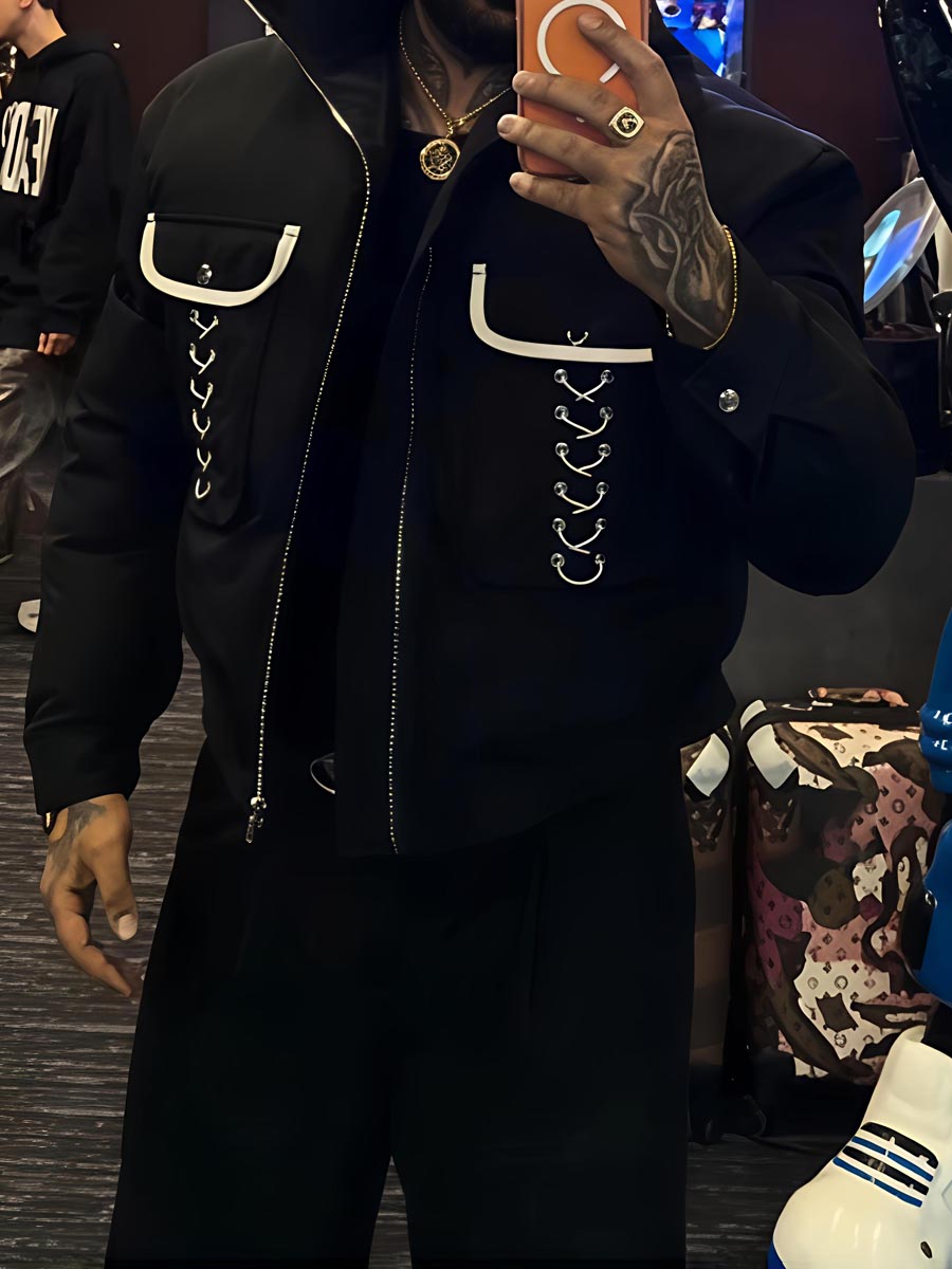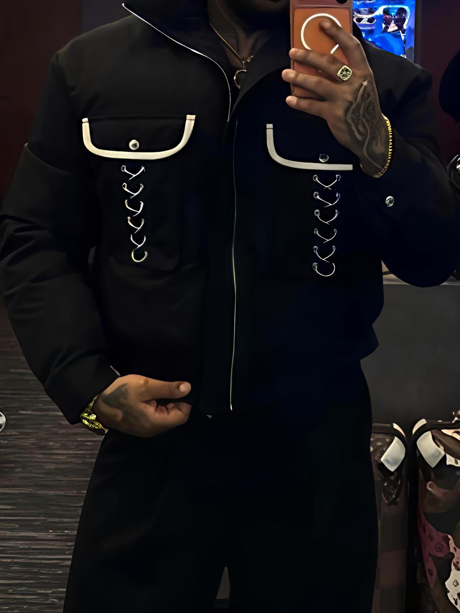 Men's Eyelet Detail Pockets Cotton-padded Jacket